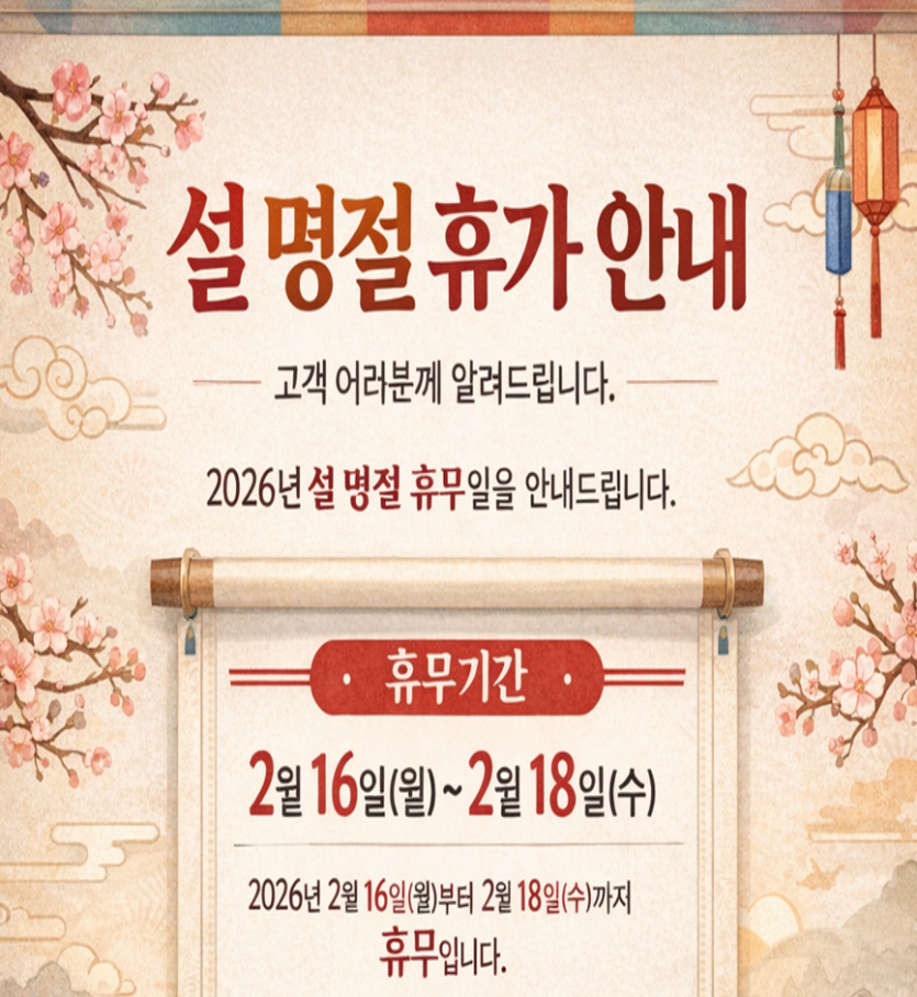 2026년 설 명절 휴가 안내 > 공지사항